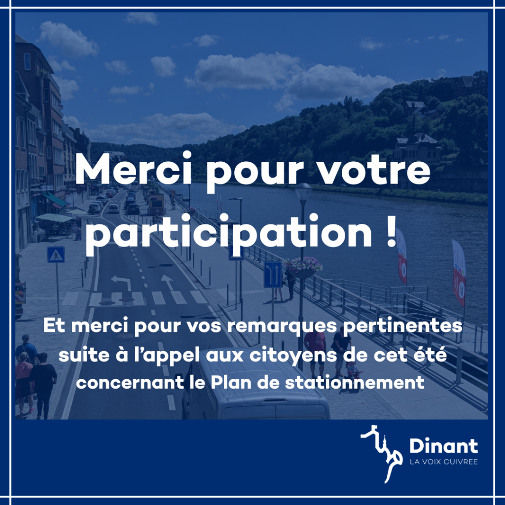 Nous tenons à vous remercier sincèrement pour votre participation et vos remarques pertinentes émises dans le cadre du Plan de stationnement.