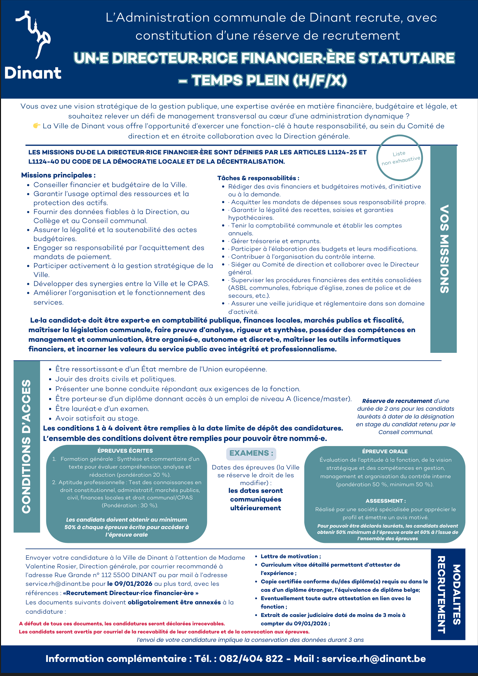 📧 Renseignements : service.rh@dinant.be – 082/40.48.22