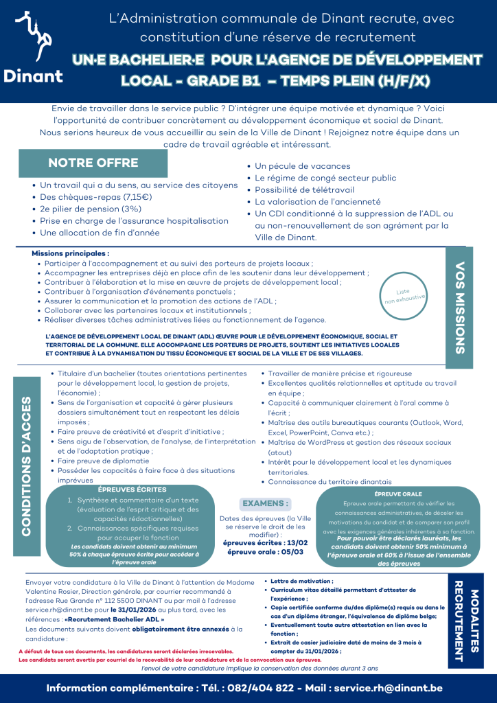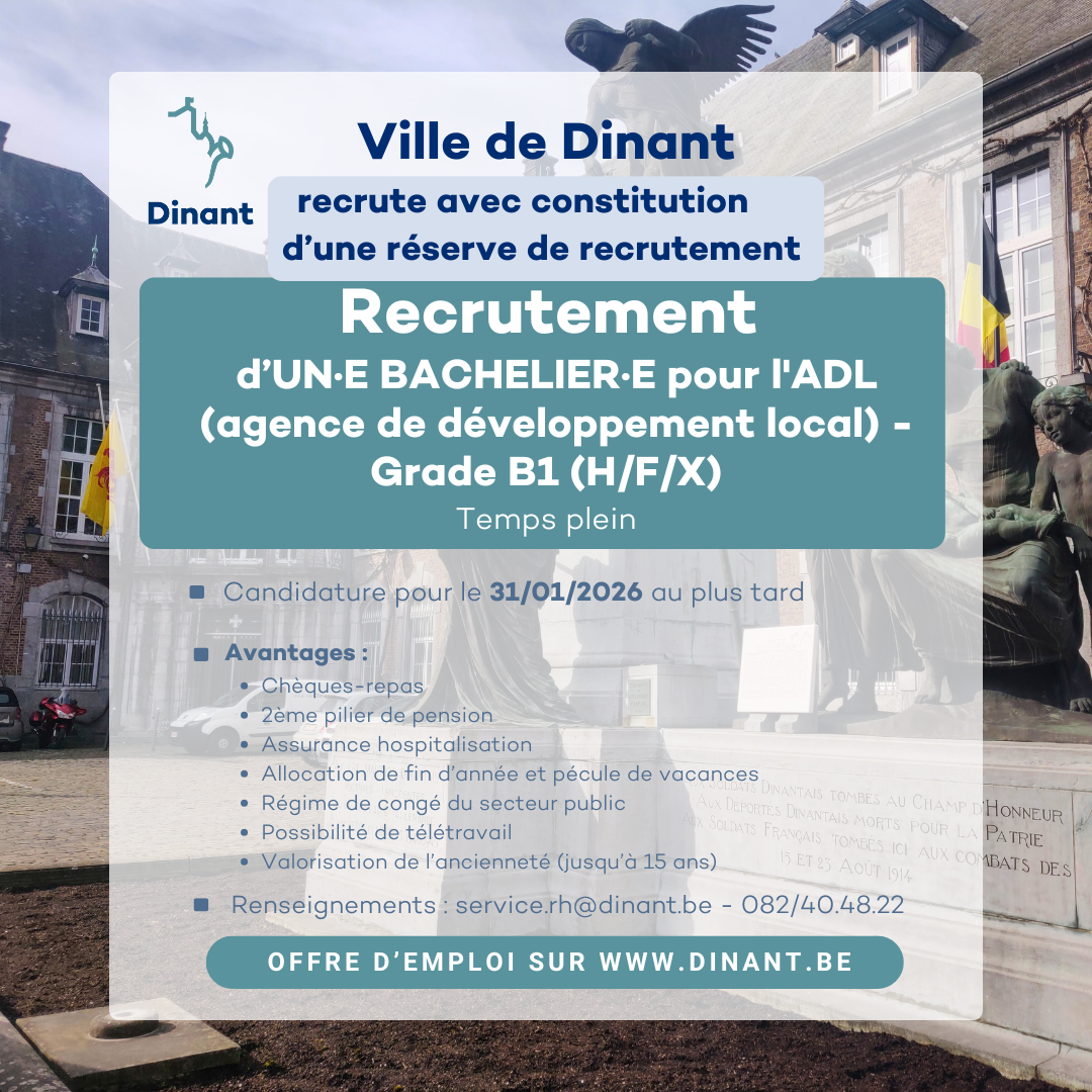 📧 Renseignements : service.rh@dinant.be – 082/40.48.22