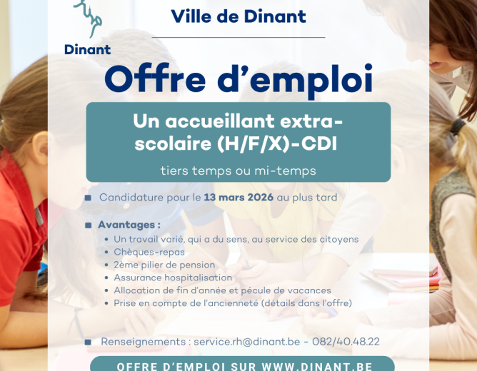 Envie de travailler dans le service public ? L’Administration communale de Dinant, au service des citoyens,...