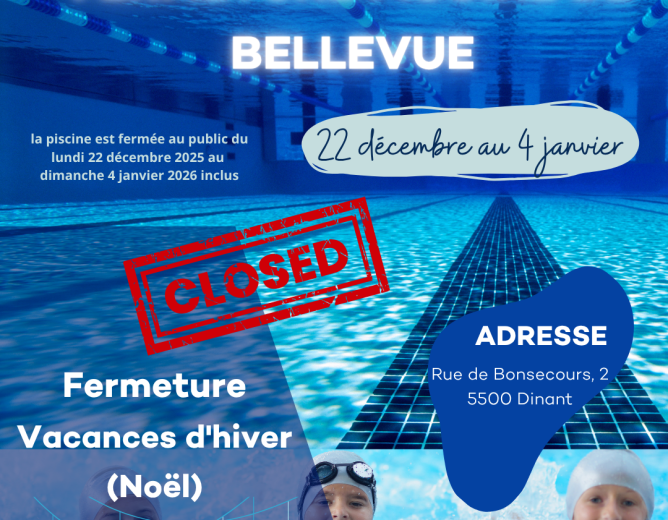 🏊♀️ La piscine du Collège Notre-Dame de Bellevue sera fermée au public : 🎄 Durant les Vacances...