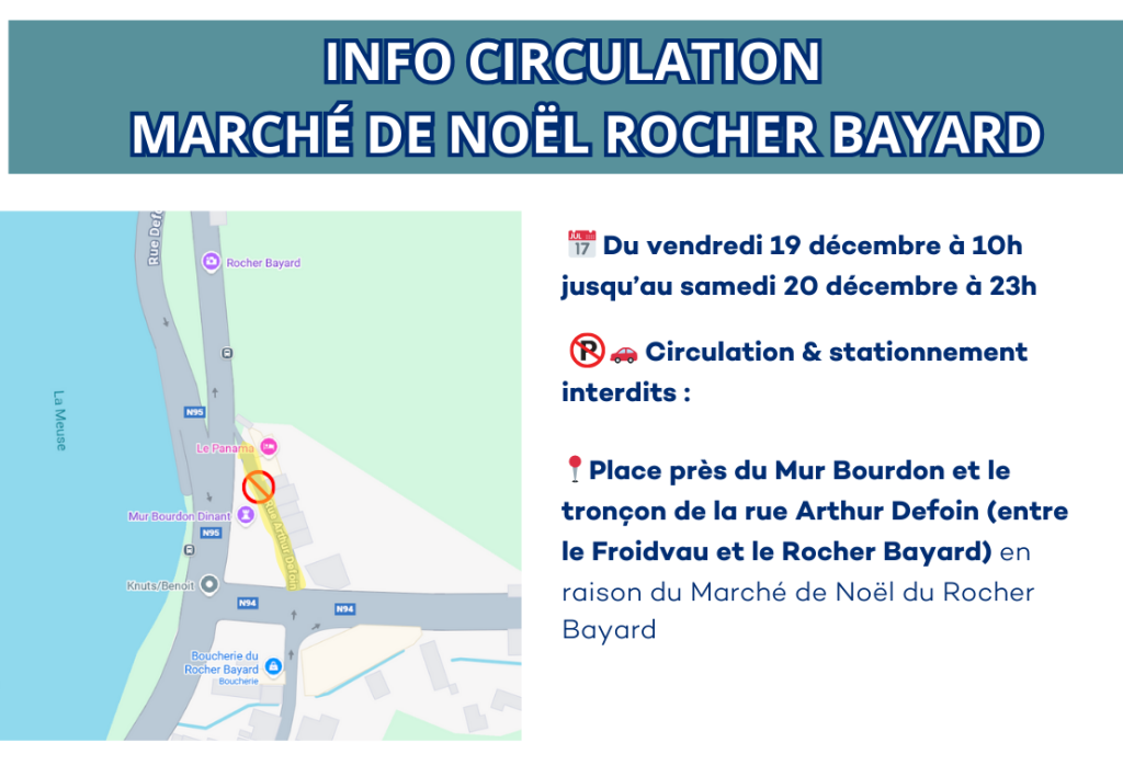 Organisé par Dinant Lumière, le bar Au Rocher et les commerçants du quartier, ce marché vous promet une ambiance festive et chaleureuse ! Venez découvrir les chalets, animations et saveurs de Noël au pied du Rocher Bayard.