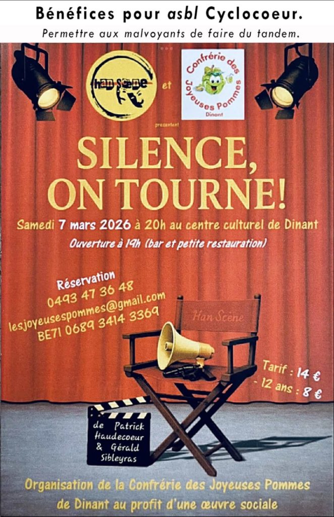 🎭 Soirée théâtre “Silence, on tourne !” – Au profit de l’asbl Cyclocœur