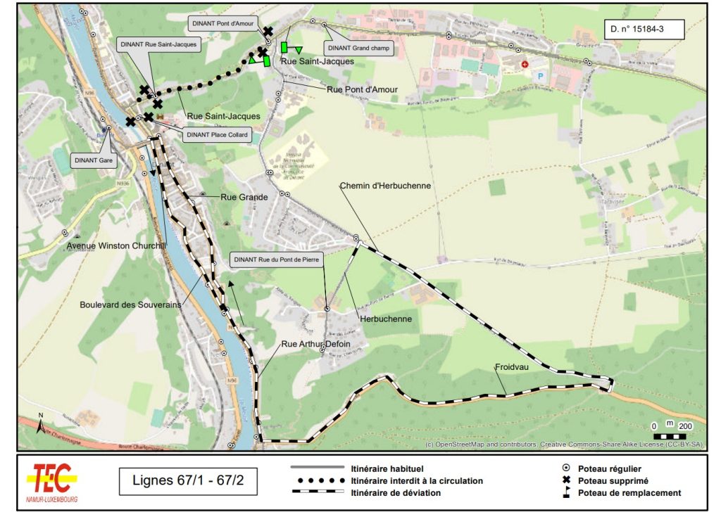 - ArrĂȘts abandonnĂ©s : Tous les arrĂȘts entre Dinant Gare et Dinant Grand Champ