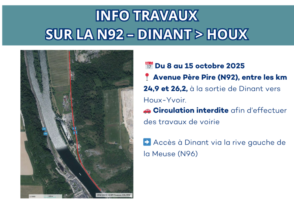 đ§ TRAVAUX SUR LA N92 â DINANT > HOUX du 8 au 15 octobre 2025