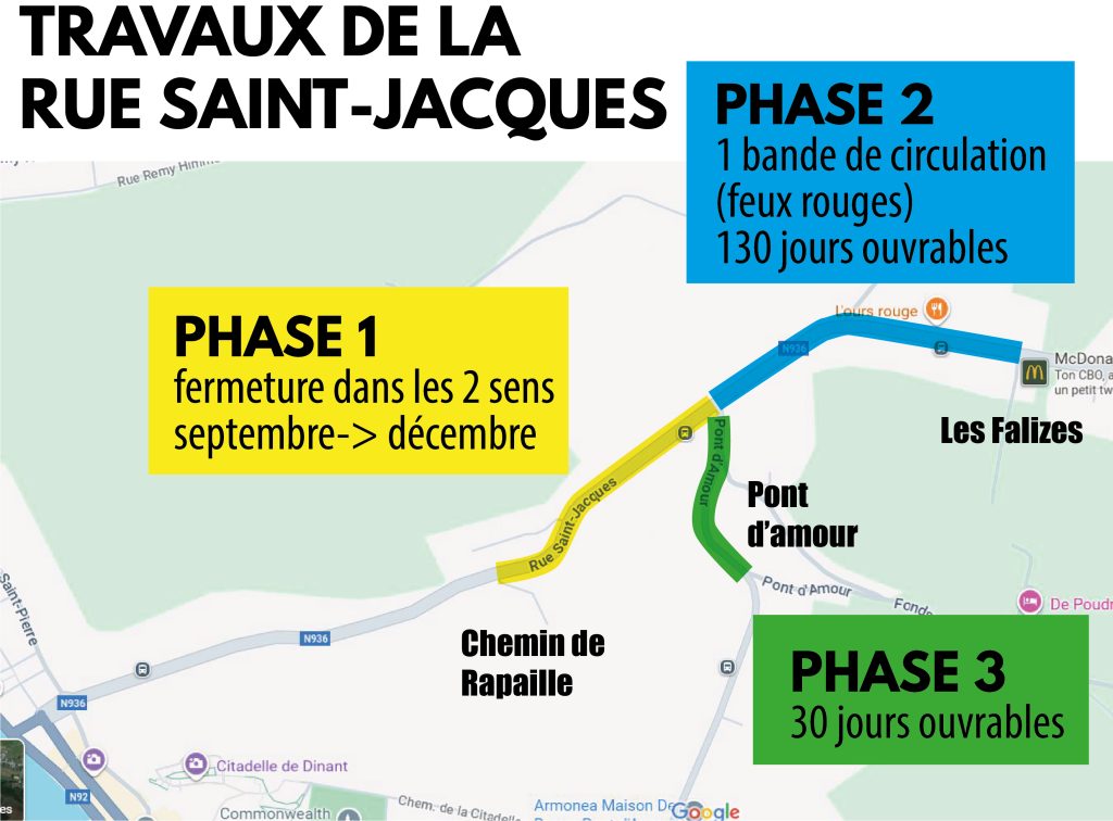 Plan de dĂ©viation â Phase 1 des travaux de la Rue Saint-Jacques (du 8/09 jusquâĂ fin dĂ©cembre 2025).