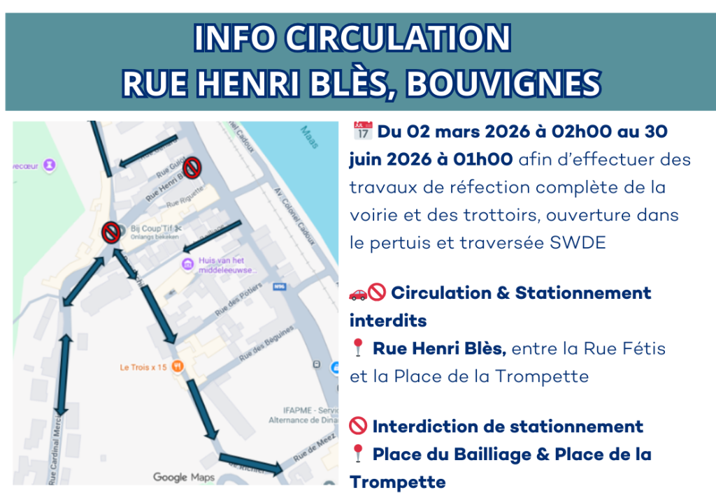 🚧 TRAVAUX - Rue Henri Blès - Du 02 mars 2026 au 30 juin 2026