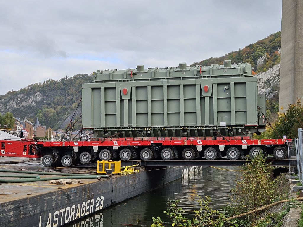 La Ville de Dinant a récemment été le théâtre d’une opération logistique impressionnante : l’arrivée de deux transformateurs électriques de plus de 500 tonnes chacun, acheminés par bateau depuis l’Allemagne via la Meuse, jusqu’au poste électrique d’Achêne.