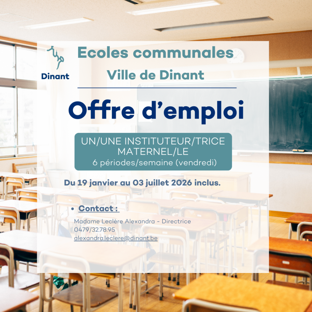 Les écoles communales de Dinant recherchent :
