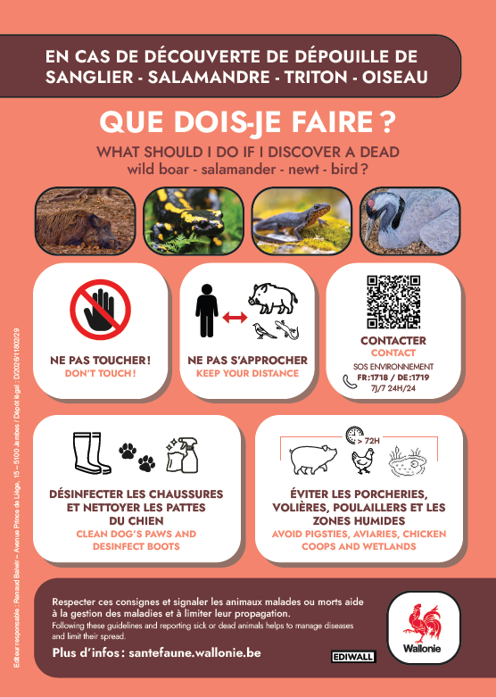 Les signalements sont transmis au Département de la Nature et des Forêts (DNF), qui réalise les prélèvements nécessaires.
