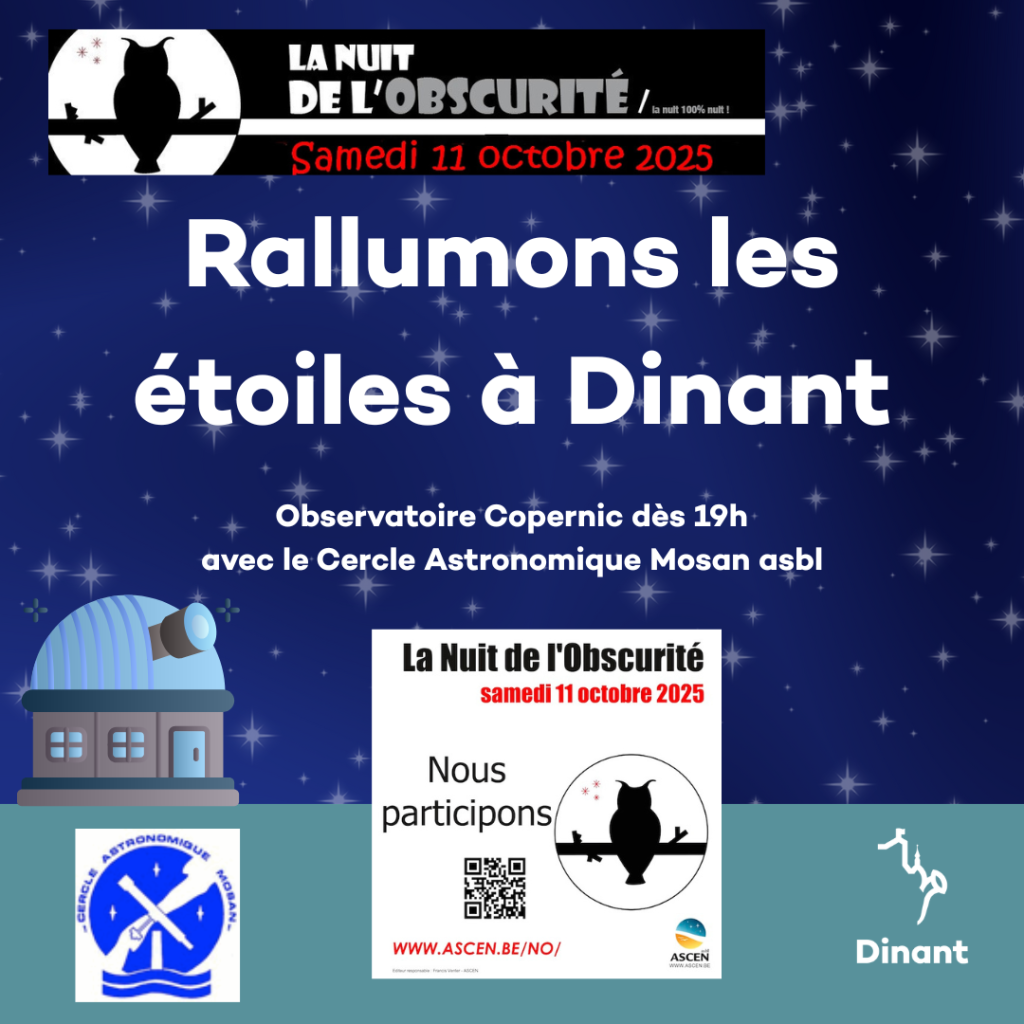 Le Cercle Astronomique Mosan asbl vous invite à vivre une soirée magique sous les étoiles à l’occasion de la Nuit de l’Obscurité 🌠