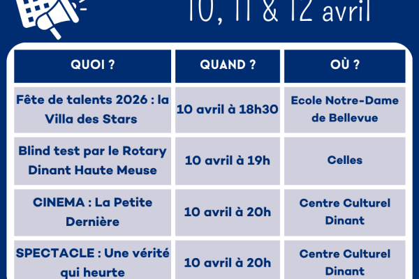 Retrouvez les différents évènements du Centre Culturel de Dinant